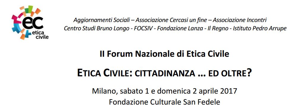 Forum di Etica Civile – Milano 1 e 2 Aprile 2017 Home > Forum di Etica Civile – Milano 1 e 2 Aprile 2017 Si sta avvicinando la data del Forum nazionale di Etica Civile programmato a Milano per l’1 e il 2 aprile prossimi. In allegato il programma dell’evento e un breve testo “7 passi per un’etica civile: cittadinanza ed oltre” nel quale sono ripresi alcuni punti qualificanti emersi nei seminari e nel percorso preparatorio, nella prospettiva di raccogliere ulteriori reazioni e stimoli in vista dell’evento milanese. _______________________________________________________________________________________________________ Anche l’Associazione Isnet è stata coinvolta nelle attivitĂ preparatorie del II° Forum nazionale di Etica Civile promosso dalla Fondazione Lanza, in una sessione di lavoro dedicata al ruolo dell’impresa sociale e dei vantaggi legati alle collaborazioni tra imprese sociali e imprese profit. In questa occasione Isnet ha presentato la prima analisi macroeconomica sull’impatto sociale della cooperazione sociale di tipo B e A+B in Italia. Per maggiori informazioni consulta il programma dell’evento  Progetti correlati Piano di manutenzione dell’organizzazione – CEASThe Place – Idee in reteLeroy Merlin – (Ri)generiamoBiennale della ProssimitĂ e Osservatorio ProssimitĂ Osservatorio Isnet sulle imprese ad impatto socialeViviamo Gratteri dove il tempo è adessoEDUCOMMUNITYFondazione Milan – Play for the futurePolo Circolabile – Effetti e potenzialitĂ del Social ProcurementProgetto enneagramma per la gestione del tempoProgetto Switch DayErasmus Rural Social IntegrationValutazione di impatto sociale partecipata: Impresa sociale Fondazione AbeleValutazione impatto progetto EDU#CARE dell’Unione Romagna Faentina Tutti i progetti >