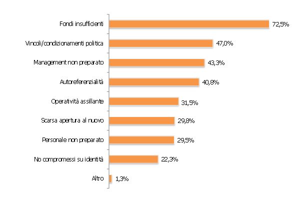 Il gap dell’impresa sociale Home > Il gap dell’impresa sociale Si è parlato di impresa sociale Il 14 marzo durante il convegno a Milano su “Impresa sociale una chanche per il lavoro e lo sviluppo” organizzato da Vita e Make a Change. In questa occasione sono stati presentati i dati inediti dell’Osservatorio Isnet con un focus sulla “social business initiative” e una rassegna delle principali criticità per l’impresa sociale ad affrontare processi di innovazione sociale. Se l’impresa sociale conferma anche nella VII° edizione dell’Osservatorio, la propria capacità di “tenuta” rispetto alle mutate condizione dei mercati preservando l’occupazione o addirittura facendola crescere, emergono resistenze ad attivare reali processi di cambiamento, resi urgenti e non più derogabili ( per il progressivo contrarsi delle risorse pubbliche e il contemporaneo aumento e complessità dei bisogni della popolazione). Sono ancora poche le organizzazioni “smart”, che sfruttano le nuove tecnologie, o si fanno protagoniste delle esperienze di sharing economy che si stanno diffondendo con grande rapidità su iniziativa di cittadini intraprendenti, oppure capaci di vantare raccordi con il mercato profit in una prospettiva di nuove collaborazioni e partnership. Di fatto, stupisce che oltre l’80% delle imprese sociali del panel Isnet, dice di non conoscere la “social business initiative” e di non aver realizzato progetti di social innovation a causa di una molteplicità di fattori riconosciuti e riconoscibili. “La crisi in atto richiede cambiamenti importanti. Secondo lei quali sono i principali ostacoli nell’avviare processi di innovazione nelle cooperative sociali?” Fonte: Osservatorio Isnet Focus su “Ostacoli al cambiamento” (indici di penetrazione panel 400 imprese sociali in Itali) Le imprese sociali sono dei “campioni” di responsabilità e cittadinanza attiva: hanno dimostrato di saper risolvere i problemi senza delegare ad altri e senza vittimismi paralizzanti. Hanno identità forti, chiarezza della propria mission, consapevolezza del proprio fare. Hanno saputo creare contesti di lavoro ricchi di significato. Questa stessa vocazione non è stata esente però da controindicazioni, quelle dell’autoreferenzialità e dell’eccesso di protagonismo che definisce confini certi con meccanismi di inclusione ed esclusione E ancora la mancanza di delega, la difficoltà ad organizzare i flussi di lavoro e suddividere le responsabilità e i ruoli all’interno delle organizzazioni, sono alla base di una operatività assillante, che schiaccia l’attività sulla gestione dell’ordinario togliendo fiato al nuovo e alla sperimentazione, lasciando al palo formazione e aggiornamento del management e del personale inserito nelle organizzazioni. Interessante che siano gli stessi imprenditori sociali a fare autoanalisi e a identificare i gap: le percentuali sulle criticità, sono frutto delle indicazioni degli intervistati. Sono le organizzazioni di più recente costituzione (da 1 a 3 anni) e quelle con performance economica “in crescita” a fare più autocritica, quasi a dire “basta all’autoreferenzialità, all’operatività schiacciante che depotenzia l’apertura al nuovo” Si dice che per cambiare il primo passo sia essere consapevoli del problema. Allora identificato il limite, spazio alle soluzioni, all’ideazione di piste di lavoro sulla quale investire, da subito, per posizionare l’impresa sociale italiana dove merita, protagonista di innovazione sociale, vera eccellenza made in Italy, capace di stare nel mercato rendendo concreta la possibilità di un’altra economia Progetti correlati Piano di manutenzione dell’organizzazione – CEASThe Place – Idee in reteLeroy Merlin – (Ri)generiamoBiennale della Prossimità e Osservatorio ProssimitàOsservatorio Isnet sulle imprese ad impatto socialeViviamo Gratteri dove il tempo è adessoEDUCOMMUNITYFondazione Milan – Play for the futurePolo Circolabile – Effetti e potenzialità del Social ProcurementProgetto enneagramma per la gestione del tempoProgetto Switch DayErasmus Rural Social IntegrationValutazione di impatto sociale partecipata: Impresa sociale Fondazione AbeleValutazione impatto progetto EDU#CARE dell’Unione Romagna Faentina Tutti i progetti >