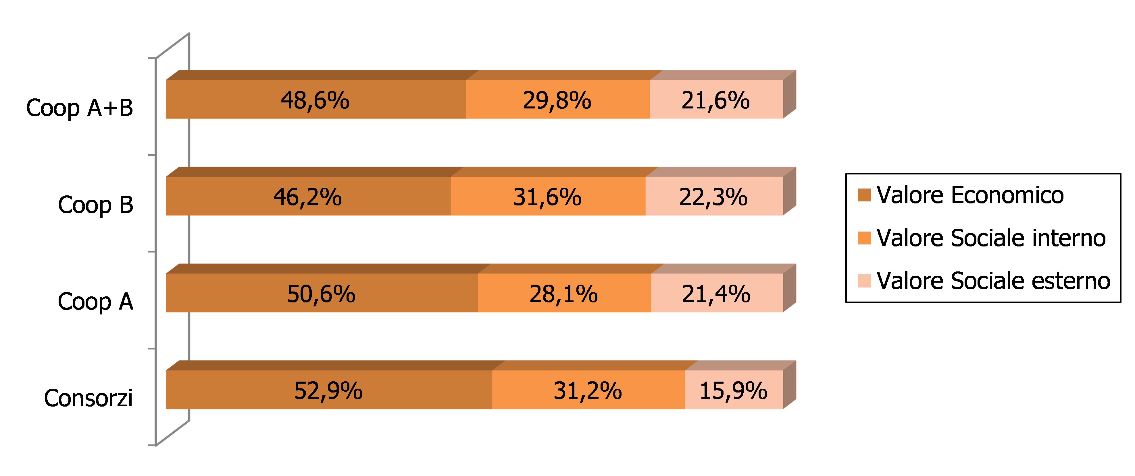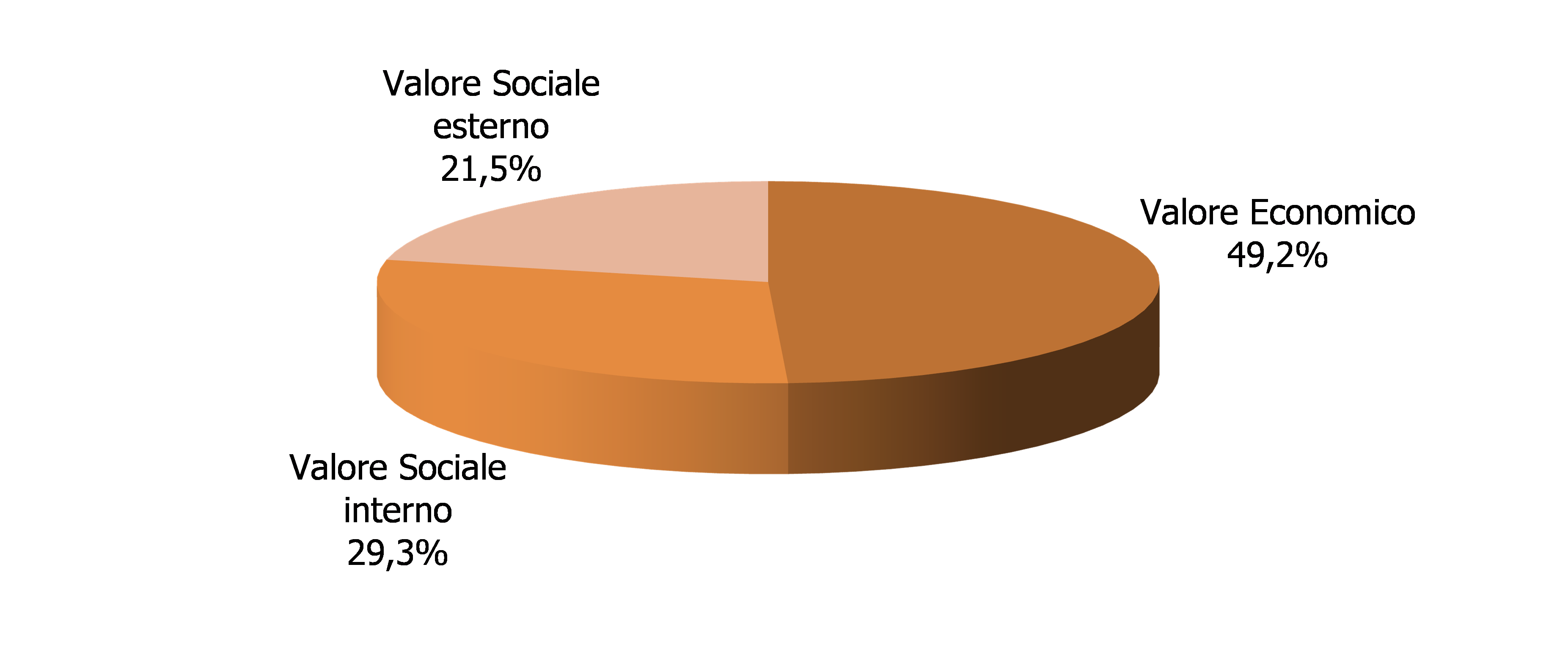 Fatto 100 tutti i risultati ottenuti nel 2011 a seguito di tutte le attivitĂ  svolte, quanti si sono tradotti in valore economico, quanti in valore sociale interno e quanti in valore sociale esterno?
